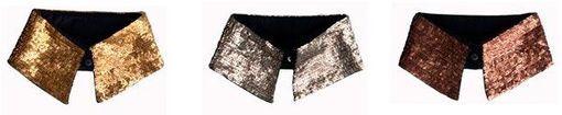 Eu amei as golinhas postiças em dourado, prateado e bronze. Elas são feitas de lantejoulas e ficam lindas sobre camisas simples para dar aquele charme.
